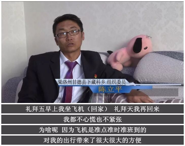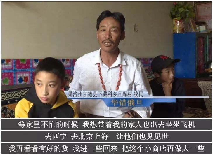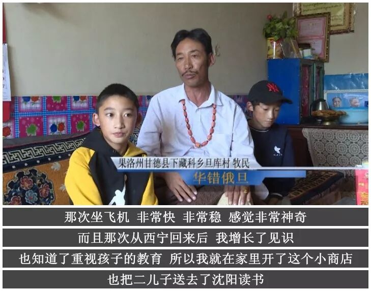 青海省果洛藏族自治州甘德县下藏科乡,是一个藏族同胞聚居的小乡镇,尽管这里距离果洛州府所在地玛沁县只有短短70多公里的距离,但在2016年之前,这里不通高速,没有班车,大山阻断了当地和外界的交往。世世代代生活在这里的藏族同胞们,连玛沁县都很少去过,更别提到西宁或者其它地方了。然而,从2016年果洛机场通航后,一切都发生了改变。 △图为青海果洛机场 36岁的陈立平是西宁人,自从2003年来到甘德县工作,到现在已经整整15个年头了。15年里,由于交通不便,他回家的次数屈指可数。 陈立平说,在机场通航前,他已经有连续三年没有回家了。2016年机场通航后,紧接着2017年初兰新高速也建成通车,方便了他前往机场。所以在2017年初他就迫不及待地乘坐飞机回了一趟家。 △图为陈立平一家的合影 和陈立平一样,体验到民航所带来的便捷性的,还有藏柔尼多合一家。藏柔尼多合一家共有八口人,上到90多岁生活不能自理的老人,下到两三岁的小孩子,一家人过着典型的藏区牧民生活,然而在2017年7月的一天晚上,藏柔尼多合的爱人不慎食物中毒,家里人赶紧将她送到了果洛州医院。 △图为藏柔尼多合的妻子和孙女 第二天早上飞机9点35分起飞,十点多他们就到达了西宁的医院,医生告诉他们,如果再晚来一两个小时的话,病人可能就会有生命危险。 同为藏区牧民的华错俄旦对果洛机场的通航有着更深刻的感受。2017年之前,华错俄旦一家和村里其他牧民一样,过着游牧生活,直到2017年6月份,他第一次乘坐飞机去了一趟西宁。 华错俄旦家的小商店是旦库村第一个小商店,村民们日常生活的必需品基本都能从这里买到,所以商店的生意也格外好,现在每个月的收入也在两三万元。在沈阳读书的二儿子学习成绩也很好。然而华错俄旦并不满足于此。 △图为华错俄旦家的经营的小商店