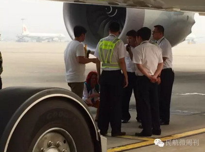 事件惊动了各部门领导,十五分钟后国航值机部门领导来机坪与旅客协商,不过完全没效果,女性旅客坚持要登机,机组表示意见很统一,不允许开门。